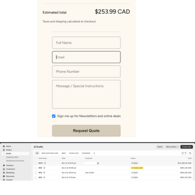 Rigidity: They couldn’t handle the complex shipping logic required for heavy pallets of flooring. The client needed a system where a customer could build a cart, request a custom shipping rate, and have that request instantly turn into a “Draft Order” in the backend—without slowing down the site.
